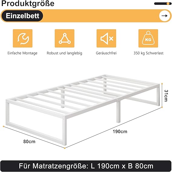 Schreibe die erste Rezension für „Metal Bed Frame 80×190 cm with Slatted Base White“