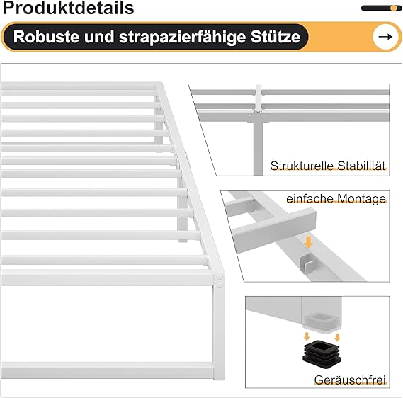 The bed frame is equipped with foot pads to reduce friction with the floor, eliminate noise, and prevent floor scratches.