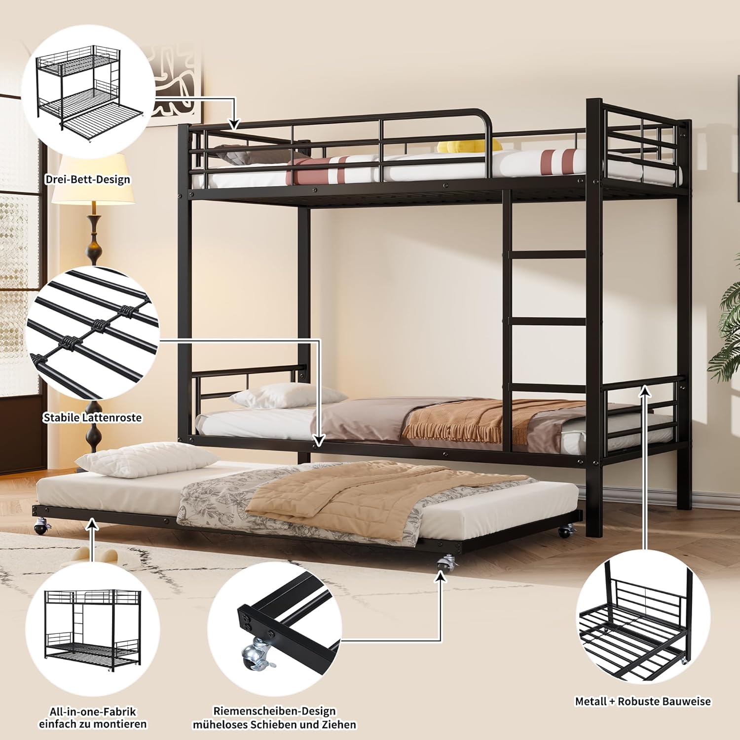 ✅ Platzsparendes 3-Personen-Bett: