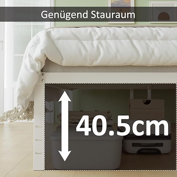 With a height of 40 cm, the bed offers ample storage space underneath. Suitcases, storage boxes, bedding, or seasonal clothing can be neatly stowed here. This keeps your bedroom tidy and organized, even when space is limited.