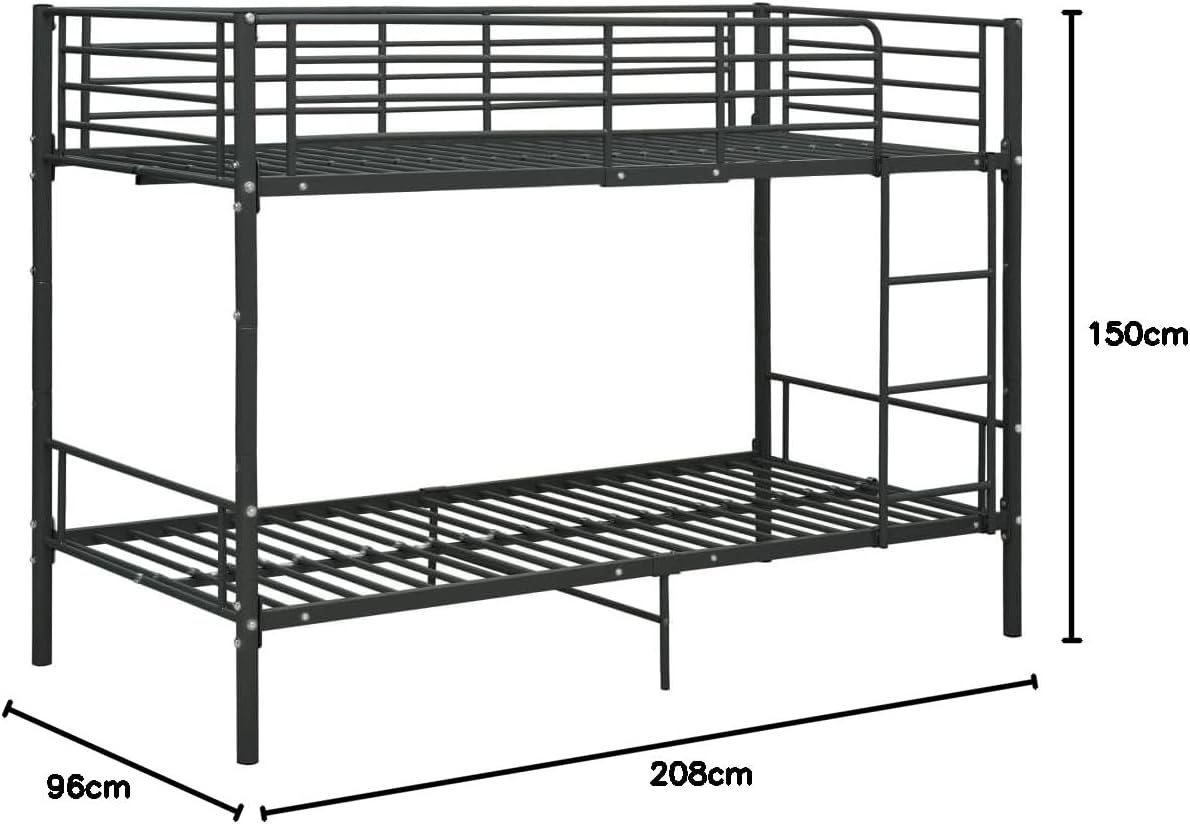 Metall-Etagenbett, 90 x 200 cm, mit Schutzgeländern und Zugangsleitern (Schwarz)