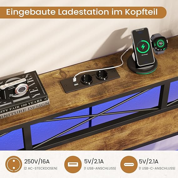 The headboard features two power outlets, one USB port, and one USB-C port for convenient charging of smartphones, tablets, headphones, and other devices. Never worry about running out of battery while relaxing in bed again.