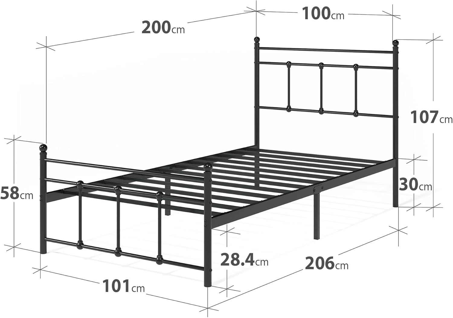 Metallbett 100×200 Schwarz mit Kopf- und Fußteil