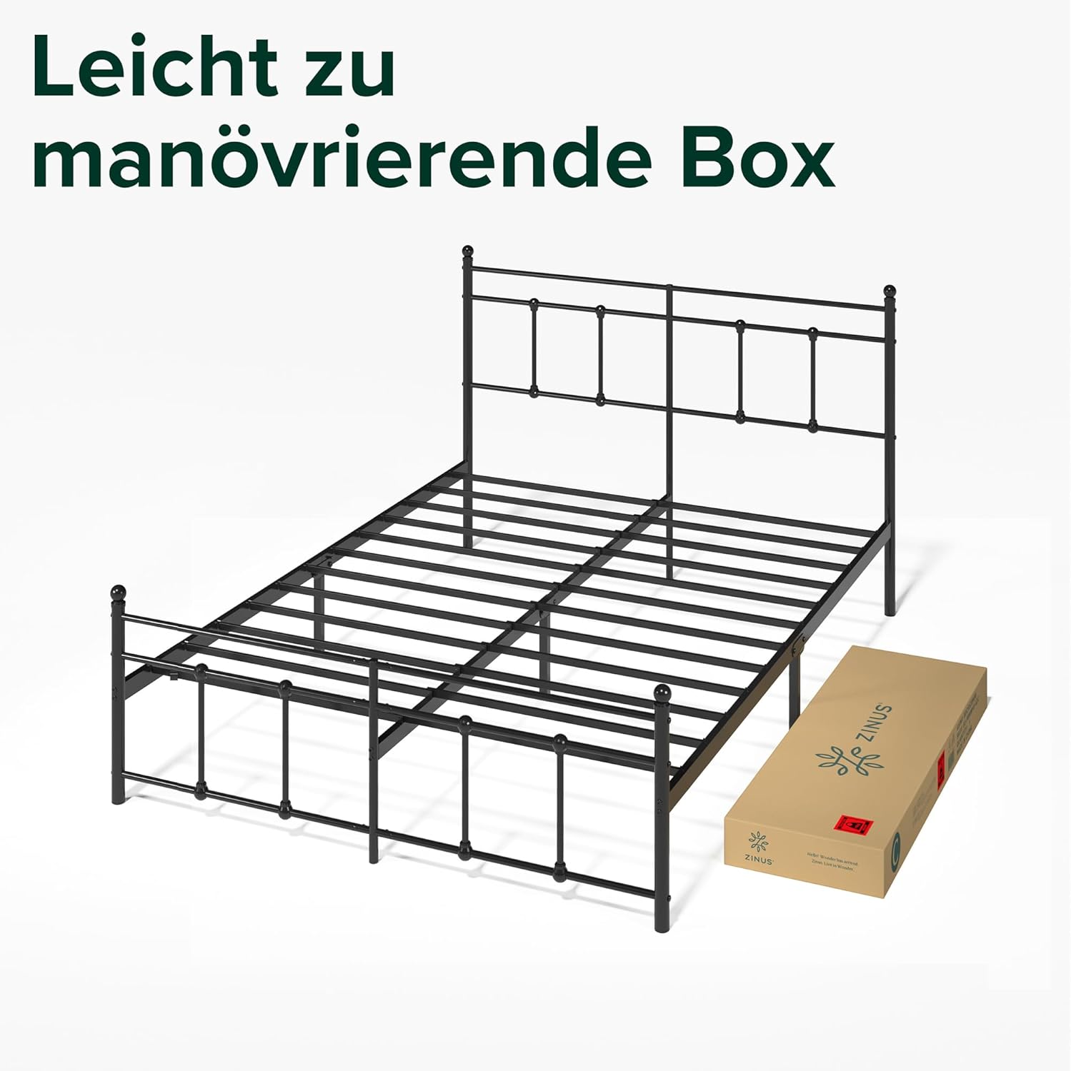 Dieses Metallbett vereint den Charme eines Vintage-Designs mit moderner, langlebiger Technik. Das klassische Erscheinungsbild sorgt für eine zeitlose Ästhetik, während die stabile Bauweise aus Metall langlebige Nutzung ermöglicht. So genießen Sie den eleganten Stil traditioneller Möbel ohne auf zeitgemäße Funktionalität zu verzichten.