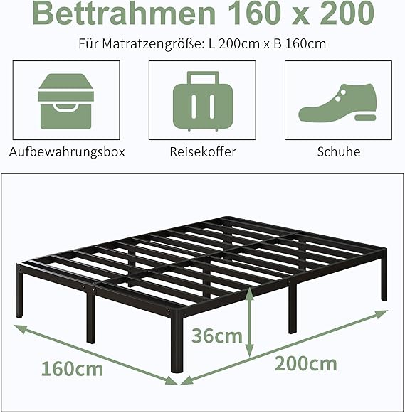 With its simple and timeless black look, the 160×200 cm metal bed fits into almost any interior design style. Whether in the bedroom, guest room, or teen’s room – it adds a modern, elegant touch to any room.