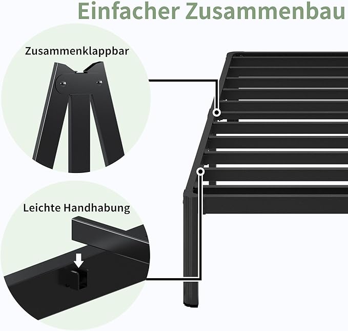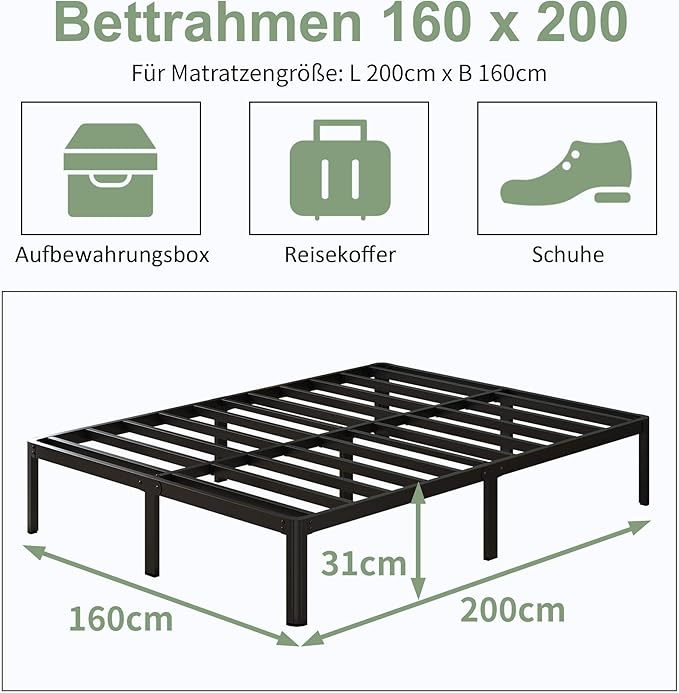 Robust construction: The sturdy metal frame offers a high load capacity (up to 300 kg), is noise-free, and ensures a peaceful, restful night. The mattress can be placed directly on the slatted frame – suitable for mattresses measuring 160 x 200 cm.
