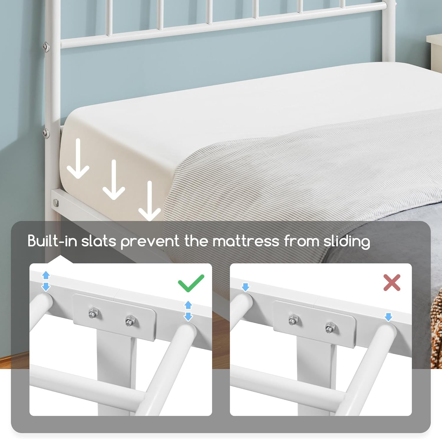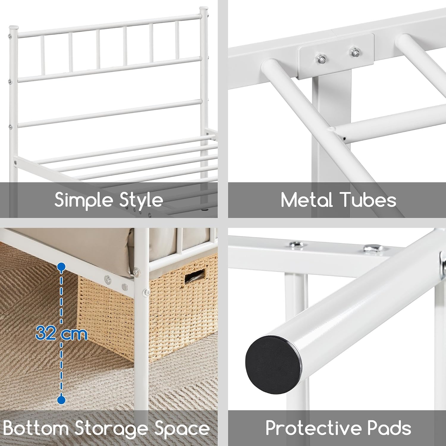 Dieses Metallbett ist mit einem langlebigen Lattenrahmen, hohen Kopf- und Fußteilen sowie 6 soliden Metallbeinen ausgestattet, die für langfristige Stabilität sorgen. Mit einer Tragfähigkeit von bis zu 136 kg bietet es zuverlässige Unterstützung für den täglichen Gebrauch.