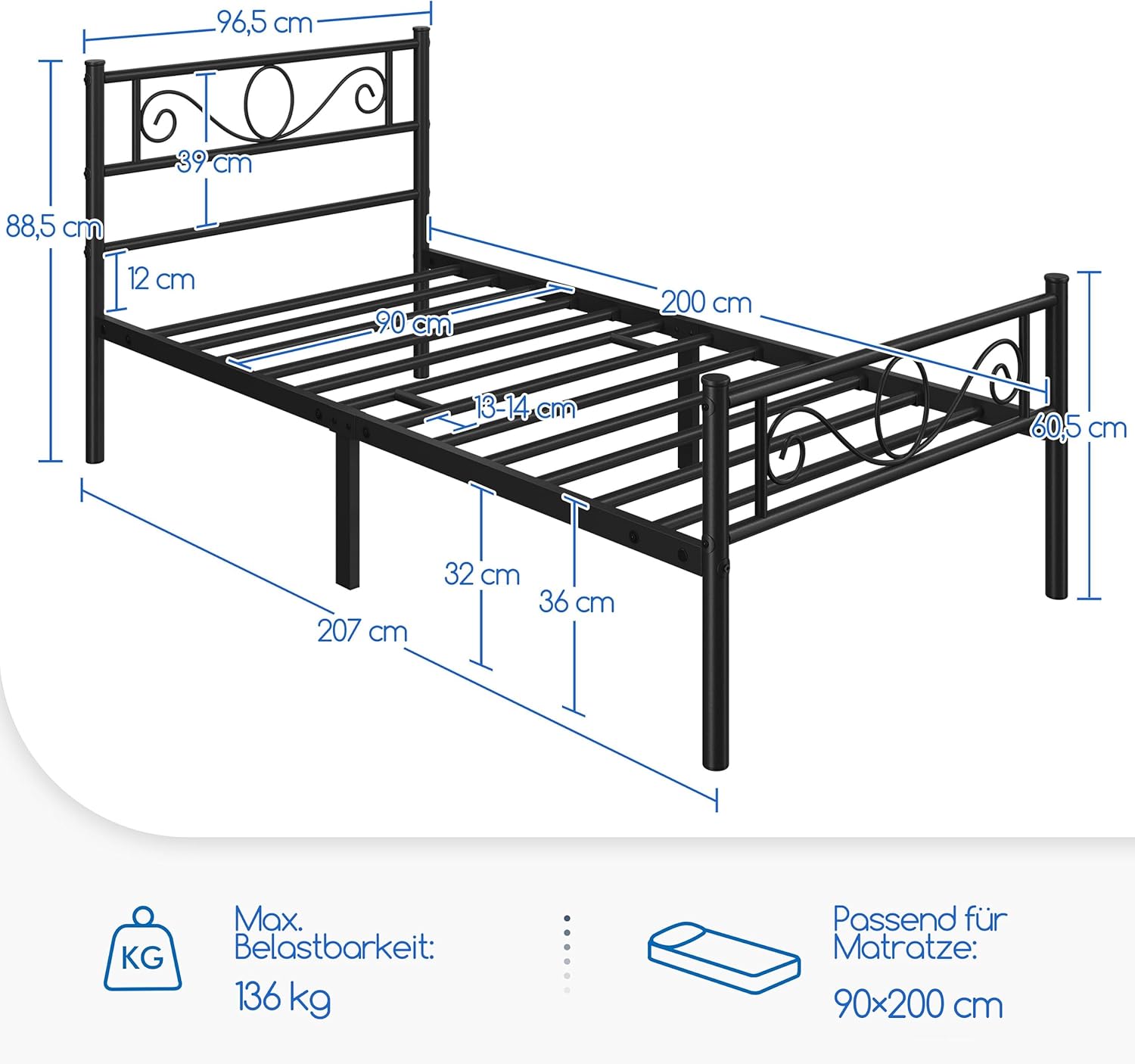 Produktmaße: 207 cm (L) x 96 cm (B) x 89 cm (H)