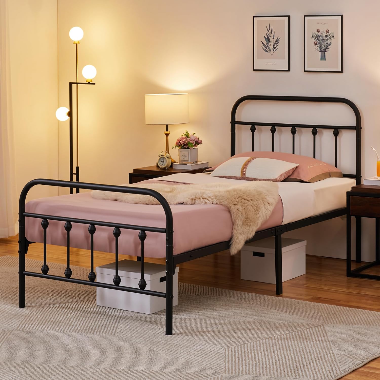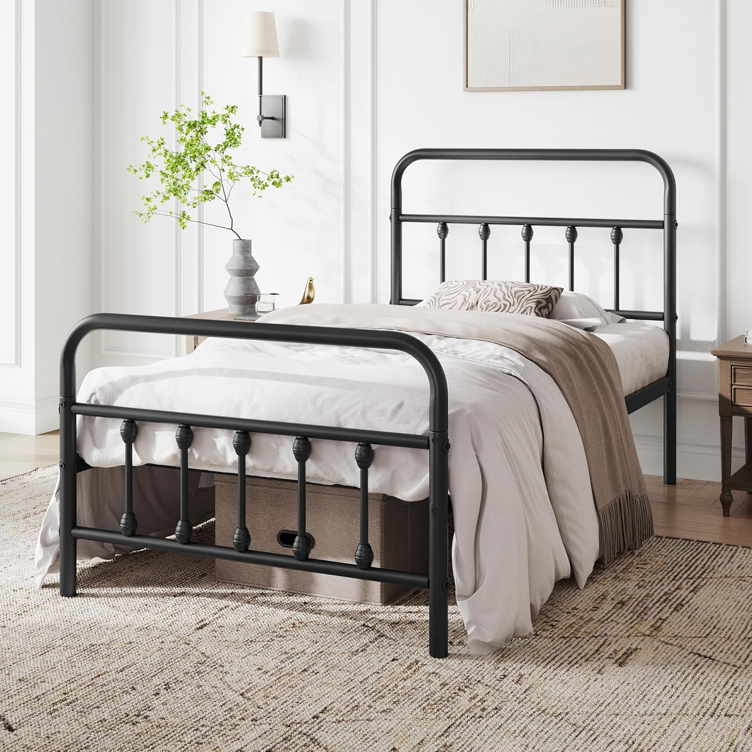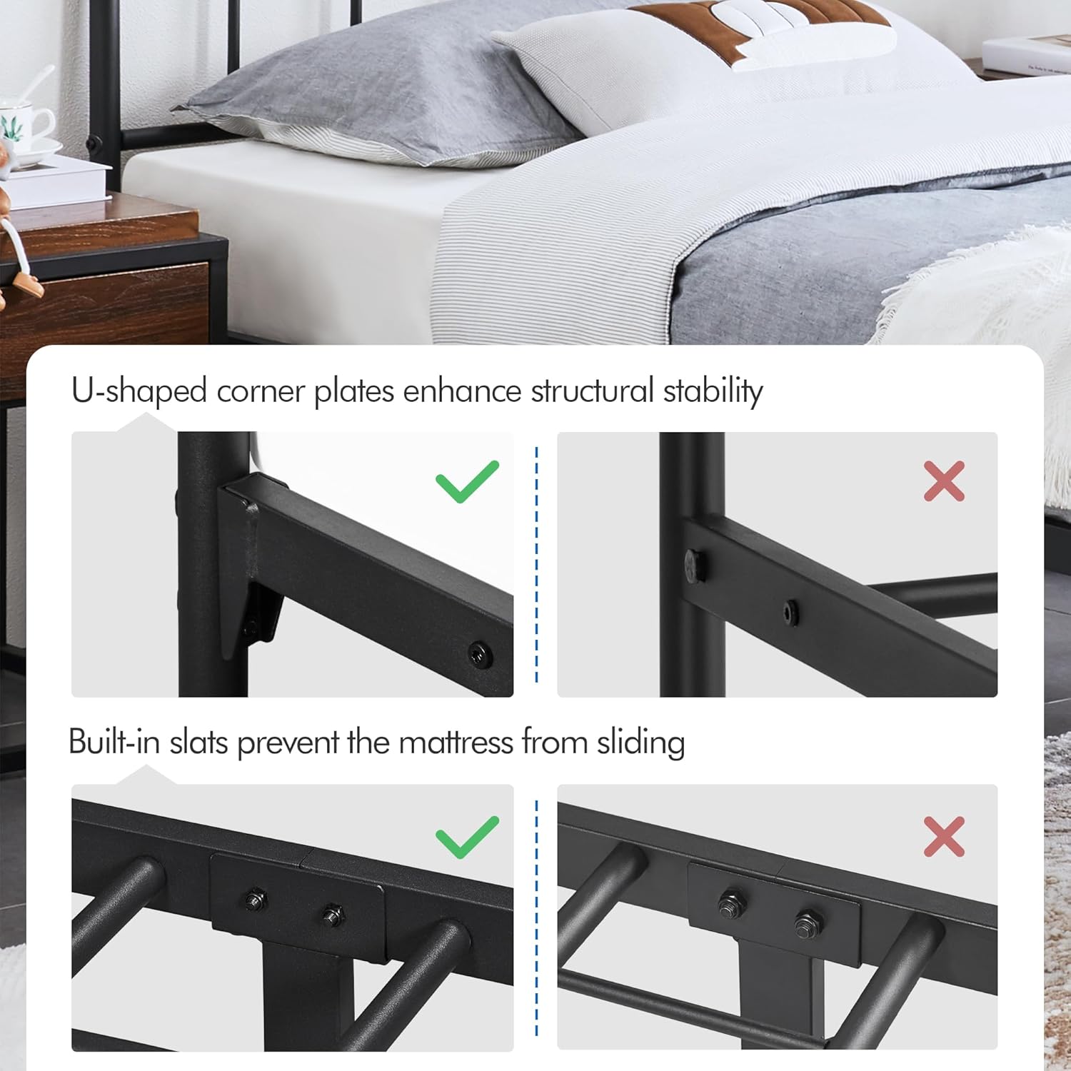 Das Metallbett verfügt über einen stabilen Lattenrost, hohen Kopf- und Fußteil sowie 6 solide Metallbeine. Mit einer Tragfähigkeit von bis zu 136 kg ist der Rahmen für den täglichen Gebrauch bestens geeignet und bietet eine langlebige und sichere Schlafunterlage.