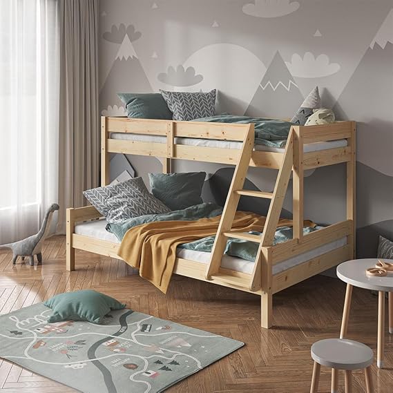 Crafted from natural pine wood, the frame offers strong stability and long-lasting durability for everyday family use. The solid wood material supports secure sleep and brings a warm, natural look that blends well with many décor styles. This quality construction ensures the bed remains sturdy over time, making it a reliable addition to children’s rooms and compact living spaces.