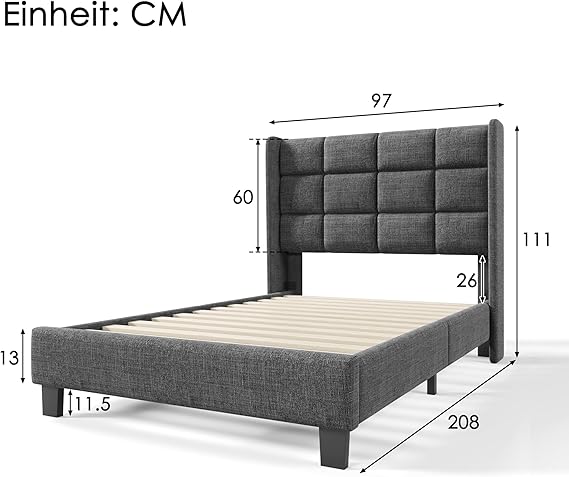 Assembly is straightforward with the included assembly instructions. The bed frame and slatted frame are included – decorations, bedside tables, and mattress are not included. The simple installation allows the bed to be assembled quickly and used immediately.
