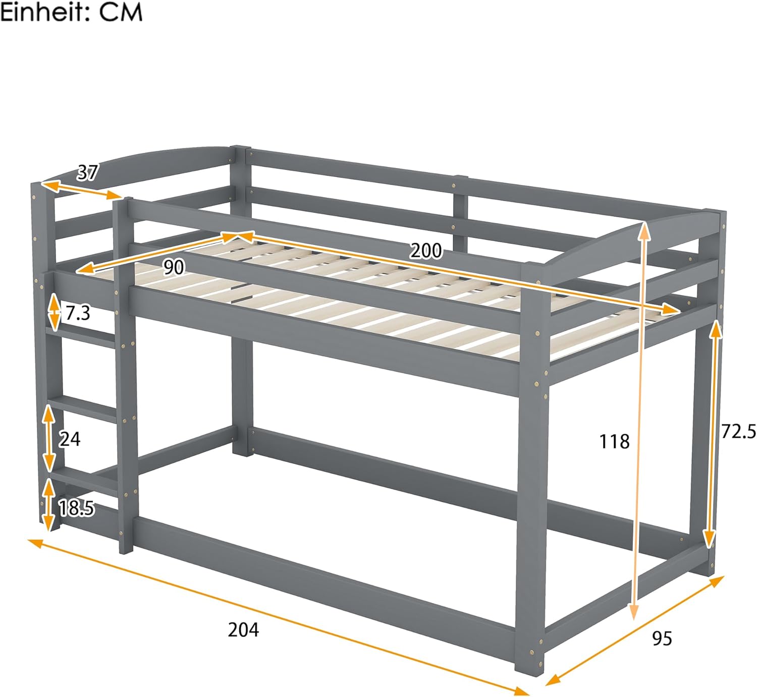 REXO Etagenbett für Kinder, 90×200 cm, Grau