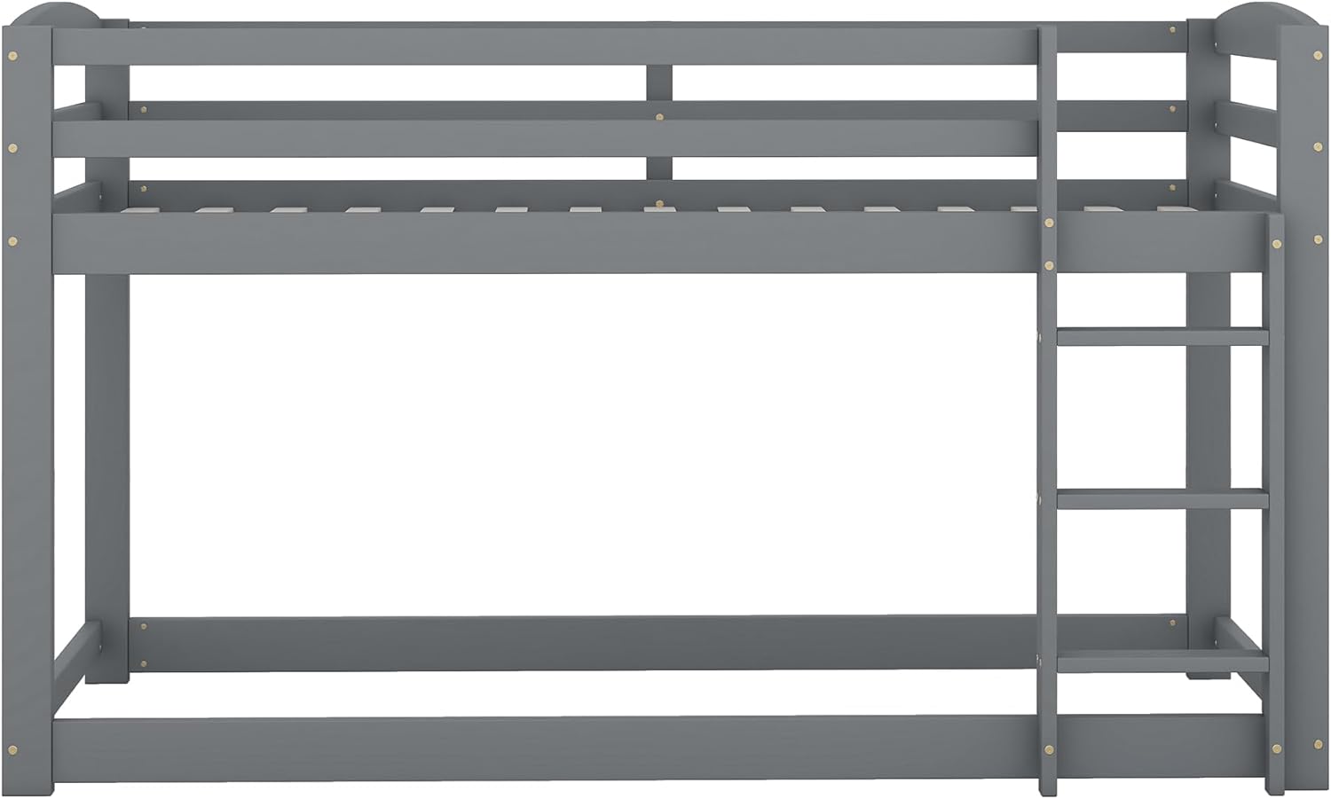 Dank des niedrigen Rahmens und des Bodenkontakts der unteren Matratze ist dieses Etagenbett eine besonders sichere Wahl für kleine Kinder und Häuser mit niedrigen Decken.