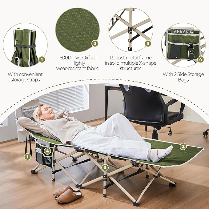 Ob beim Camping, als Gartenliege, im Arbeitszimmer als Gästebett oder für den Freibadbesuch – dieses Feldbett ist flexibel und überall einsetzbar. Auch ideal als Begleitbett im Krankenhaus oder auf Reisen.