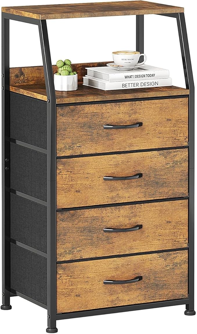 Gefertigt aus robusten Materialien mit stabilem Metallrahmen und leichtgängigen Stoffschubladen für lange Haltbarkeit und Bedienkomfort. Die wasserfeste Holzplatte ist widerstandsfähig, während die verstellbaren Füße für Stabilität sorgen – ideal für Schlafzimmer, Wohnzimmer und mehr.