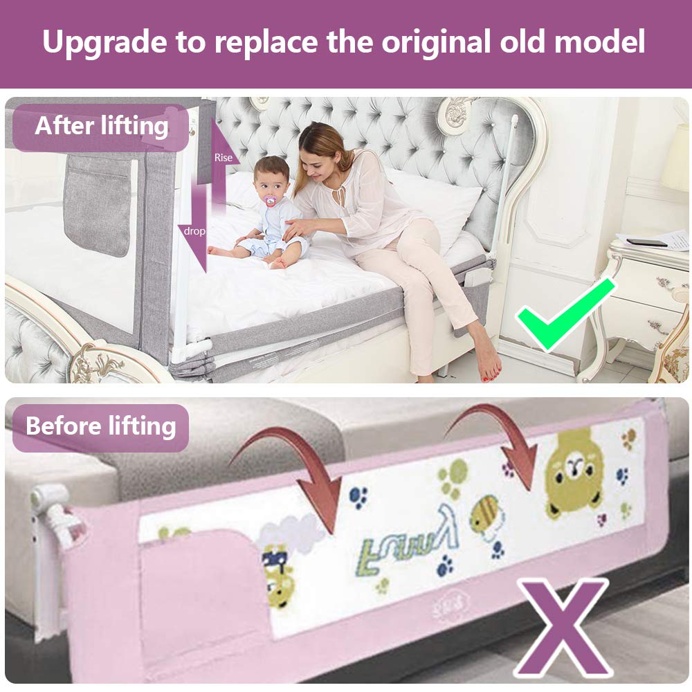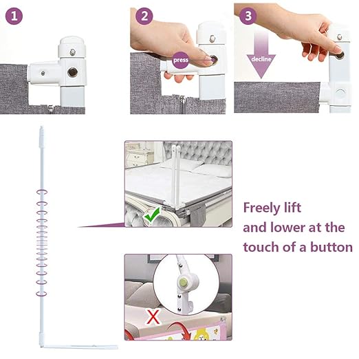 Das praktische vertikale Hebedesign ermöglicht ein müheloses Hoch- und Runterklappen der Bettschiene – schnell, bequem und ohne zusätzlichen Platzbedarf. Die Schiene wird sicher am Bettrahmen verschraubt und bietet damit optimalen Schutz. Nicht geeignet für Plattformbetten oder ähnliche Bettarten.