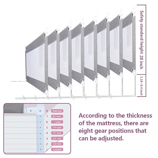 Die Höhe der Schiene lässt sich flexibel an die Matratzenstärke anpassen. Für mehr Komfort lässt sich die Führungsschiene bis zur Matratzenoberfläche absenken – ideal zum Sitzen am Bettrand. Kompatibel mit den meisten herkömmlichen Bettmodellen.