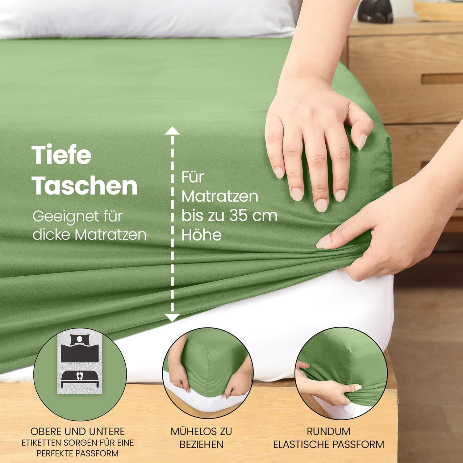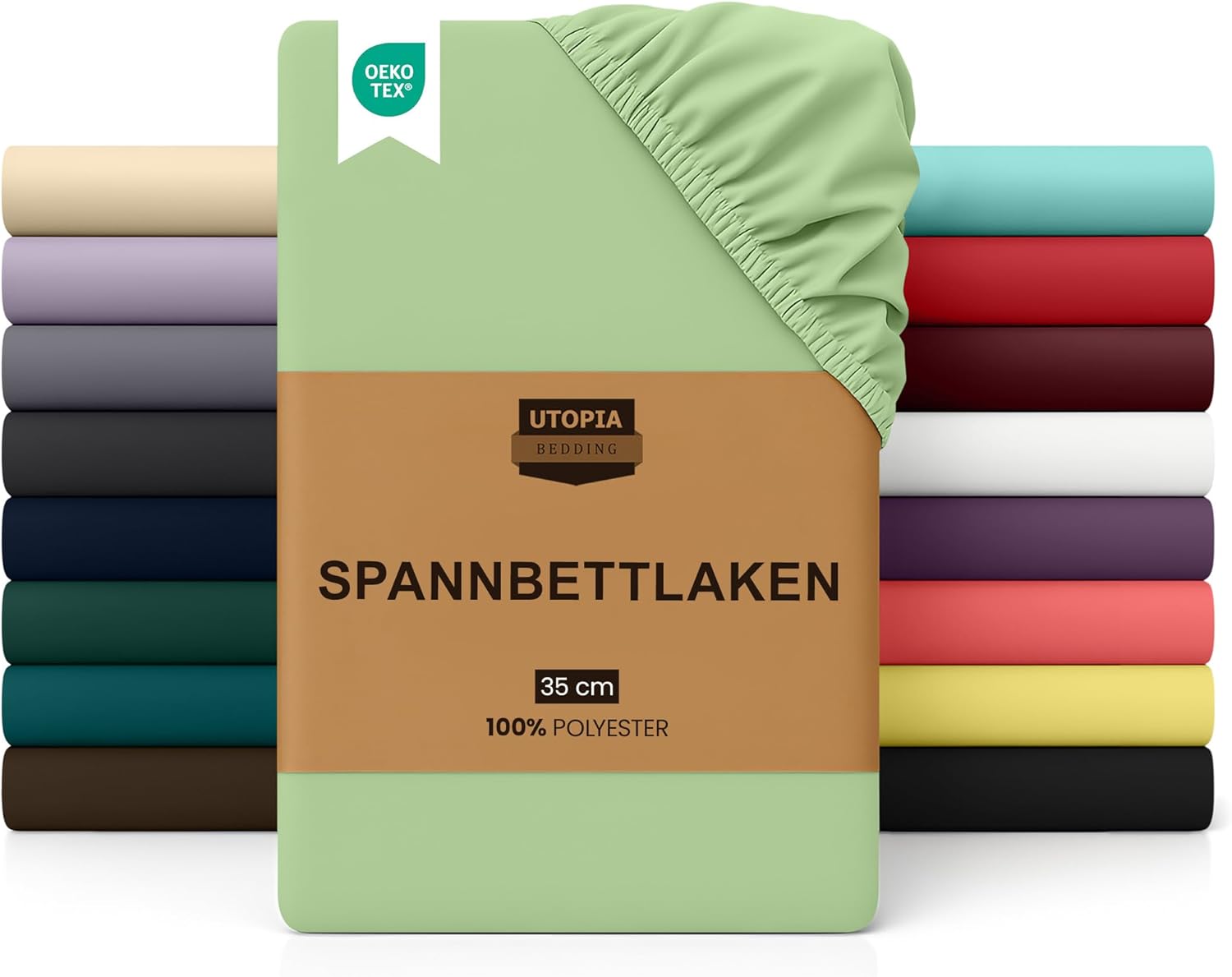 Spannbettlaken Grün 180×200 cm Oeko Tex 35cm