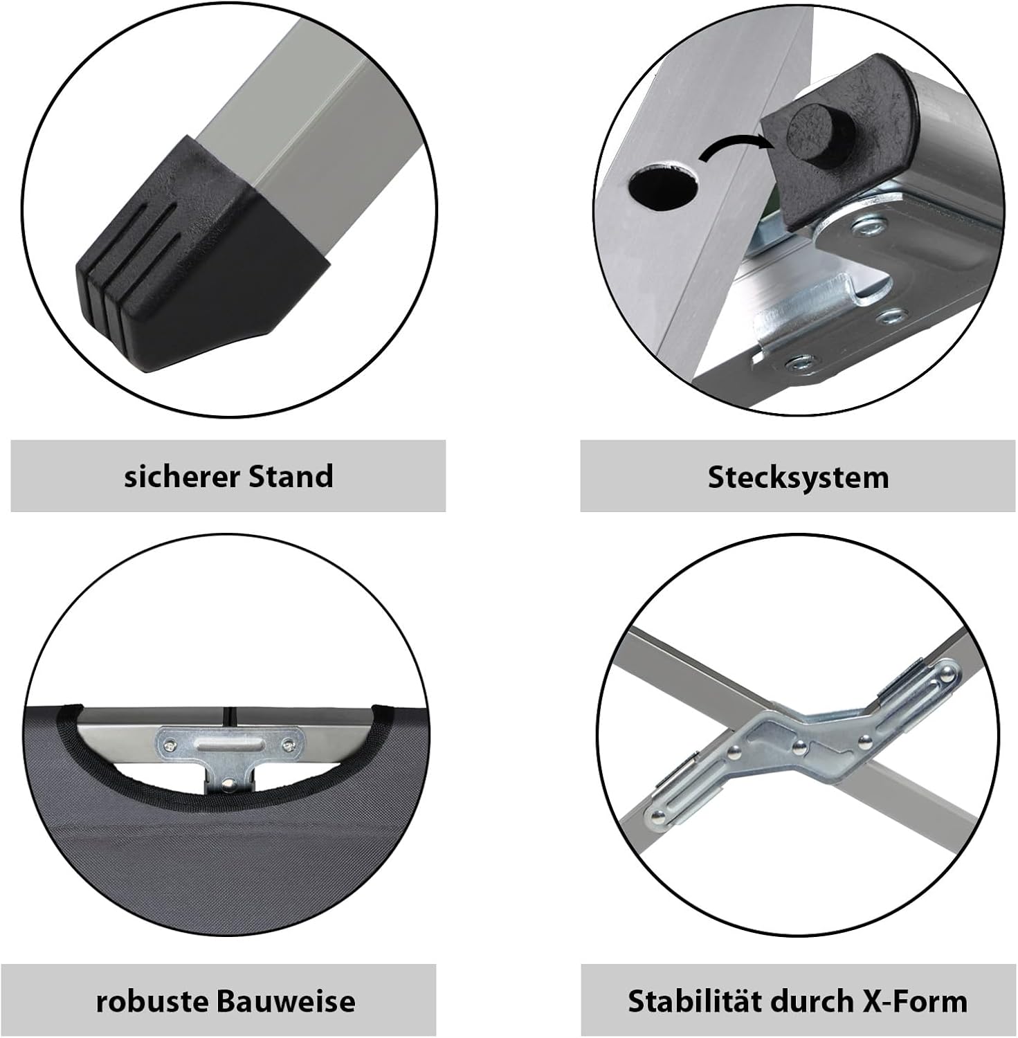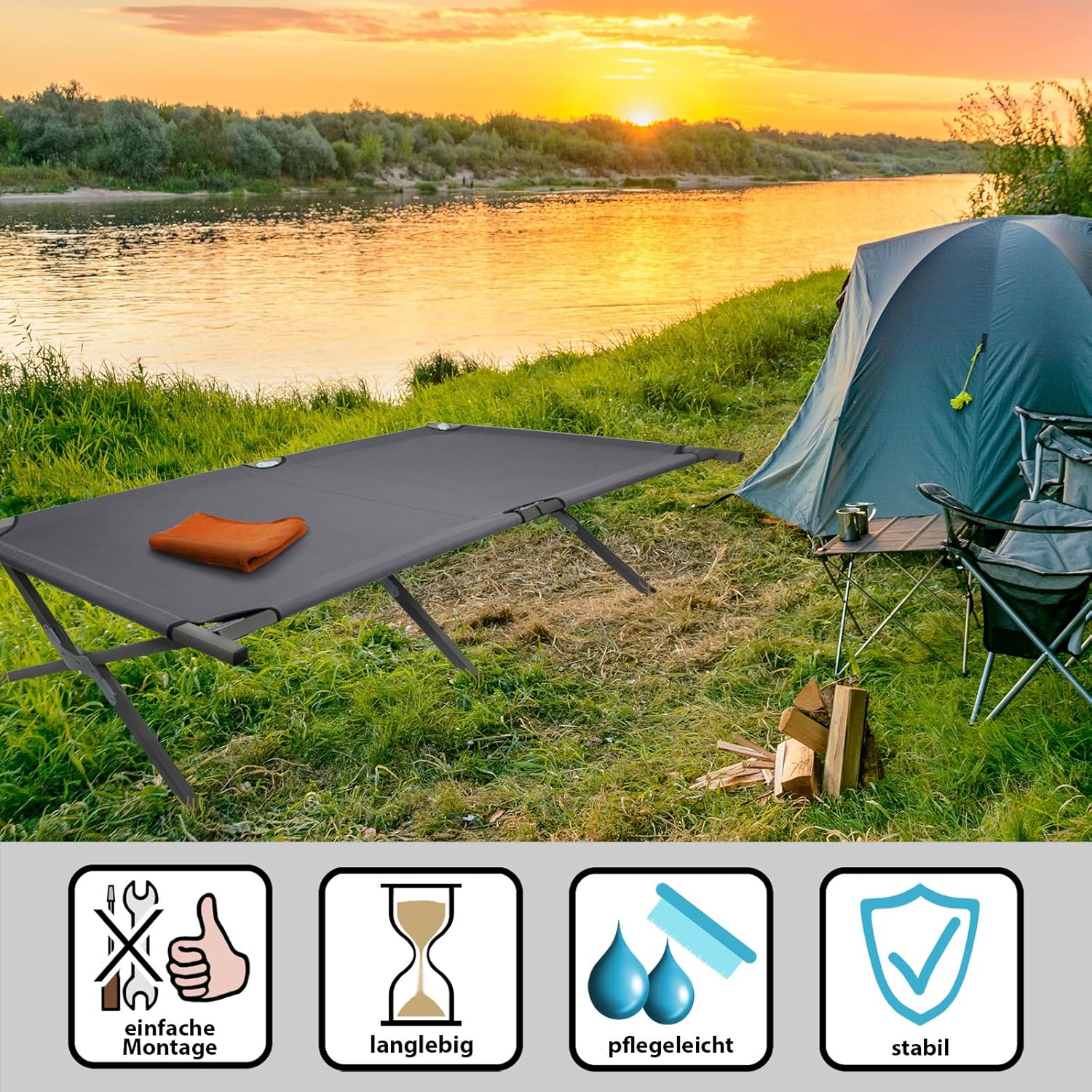Ideal for indoors and outdoors – whether camping, as a guest bed, or garden lounger. The folding bed offers a high level of sleeping comfort and can be set up and taken down quickly and easily. Perfect for traveling, festivals, or as an emergency bed at home.
