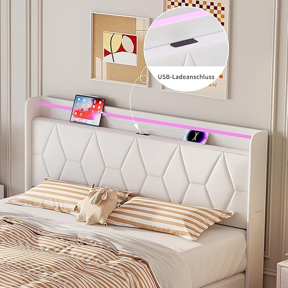 Enjoy customizable lighting with the built-in LED strip that allows you to create a cozy and personal atmosphere. Adjust the brightness and tone to suit your mood, whether for reading, relaxing, or unwinding at night. The LED feature not only elevates the room’s design but also enhances your sleeping experience, providing soft illumination and a touch of modern luxury.