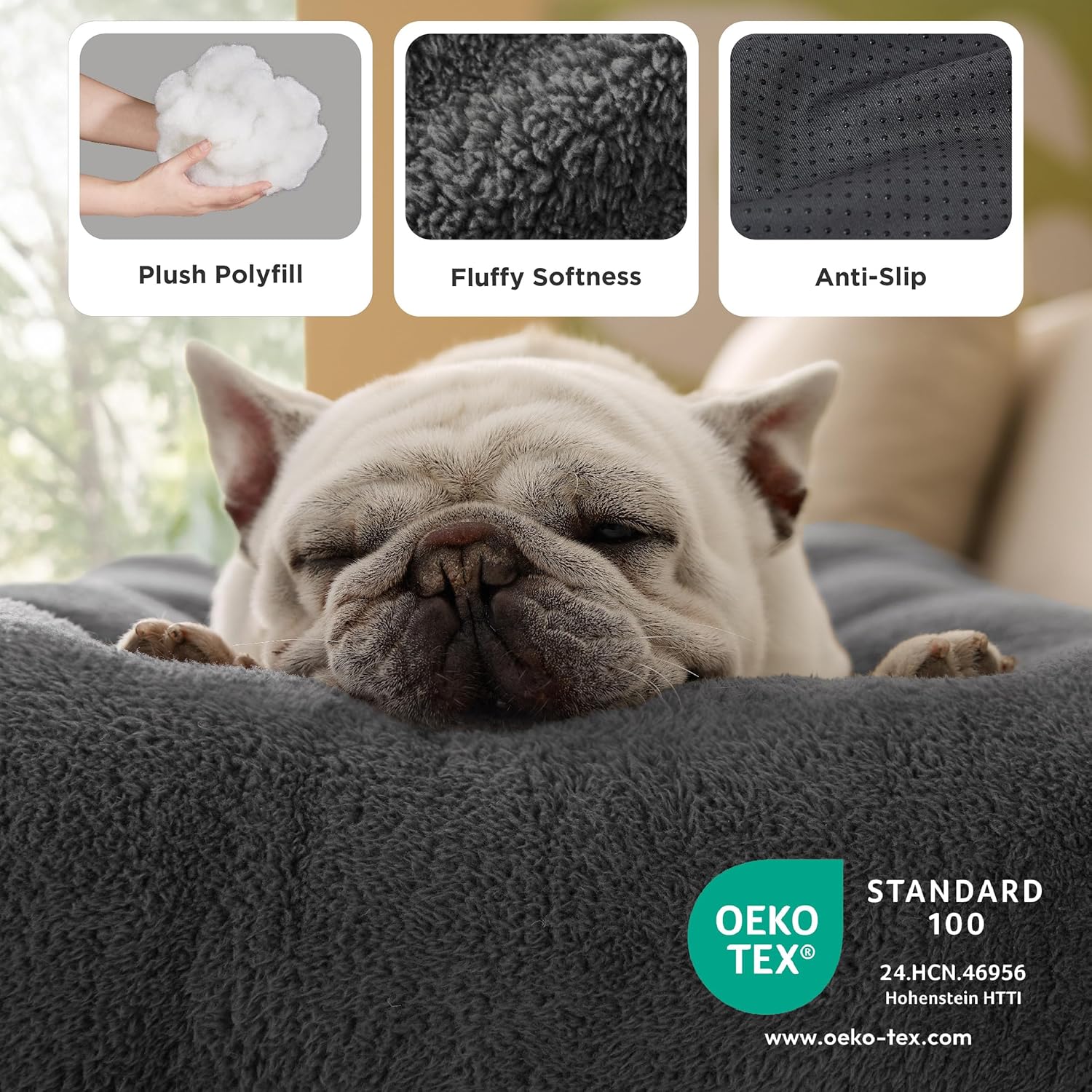 • Sicherer, rutschfester Boden: Die gummierte Unterseite dieser Matte wurde so konzipiert, dass sie lästiges Verrutschen effektiv verhindert. Selbst bei lebhaften Tieren bleibt die Matte sicher an Ort und Stelle, was für sorgenfreies Relaxen und mehr Sicherheit im Haus sorgt.