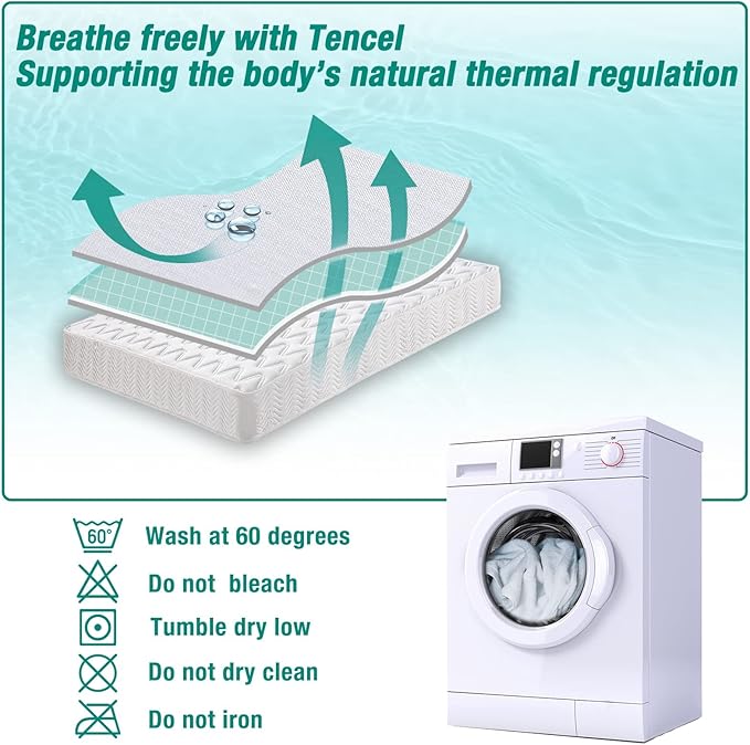 ✅ Nachhaltige Materialien: Oberseite aus 100 % natürlichem Tencel – besonders weich, hautfreundlich und atmungsaktiv. Unterseite mit wasserdichter PU-Beschichtung für zuverlässigen Nässeschutz.