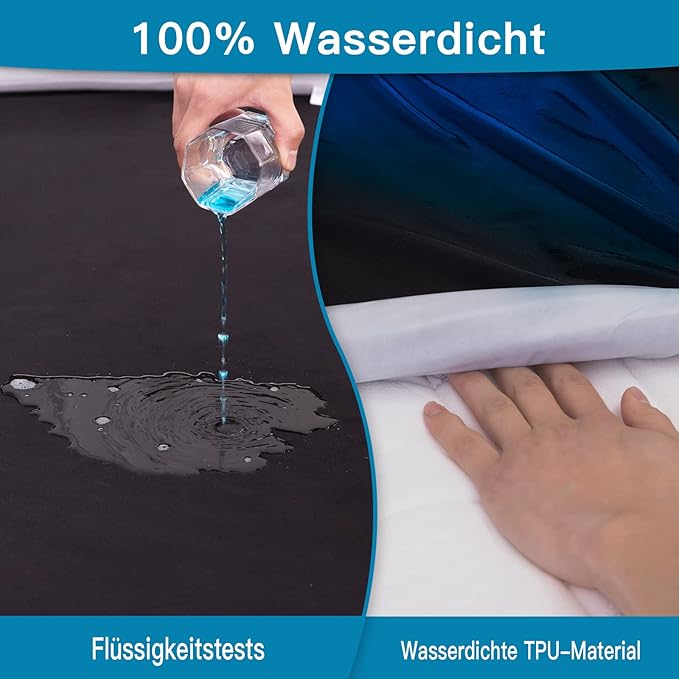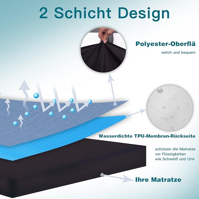 Die TPU-Trägerschicht schützt Ihre Matratze zuverlässig vor Flüssigkeiten, Schweiß, Getränken und weiteren Verunreinigungen.