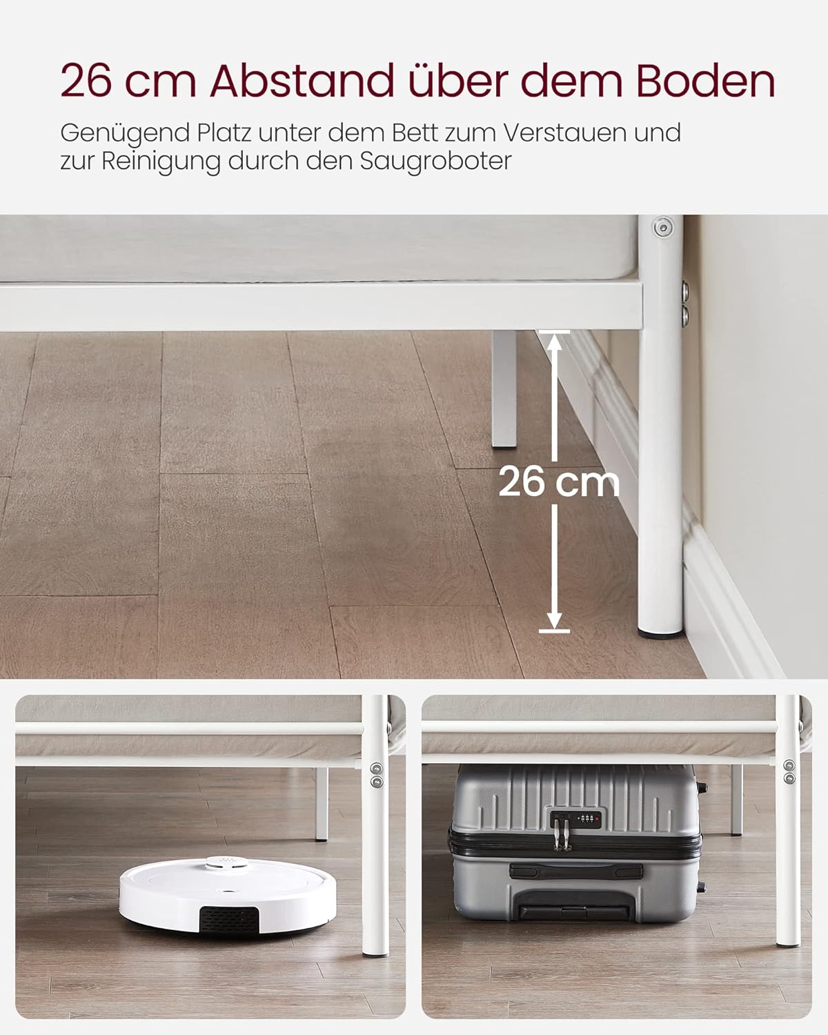 With 26.5 cm of clearance between the floor and the support beam, this bed provides ample storage space underneath. Perfect for keeping boxes, bedding, or seasonal items neatly out of sight, it helps you make the most of your room’s layout. The open space also allows easy cleaning access—robot vacuums can glide through effortlessly, keeping your room spotless.