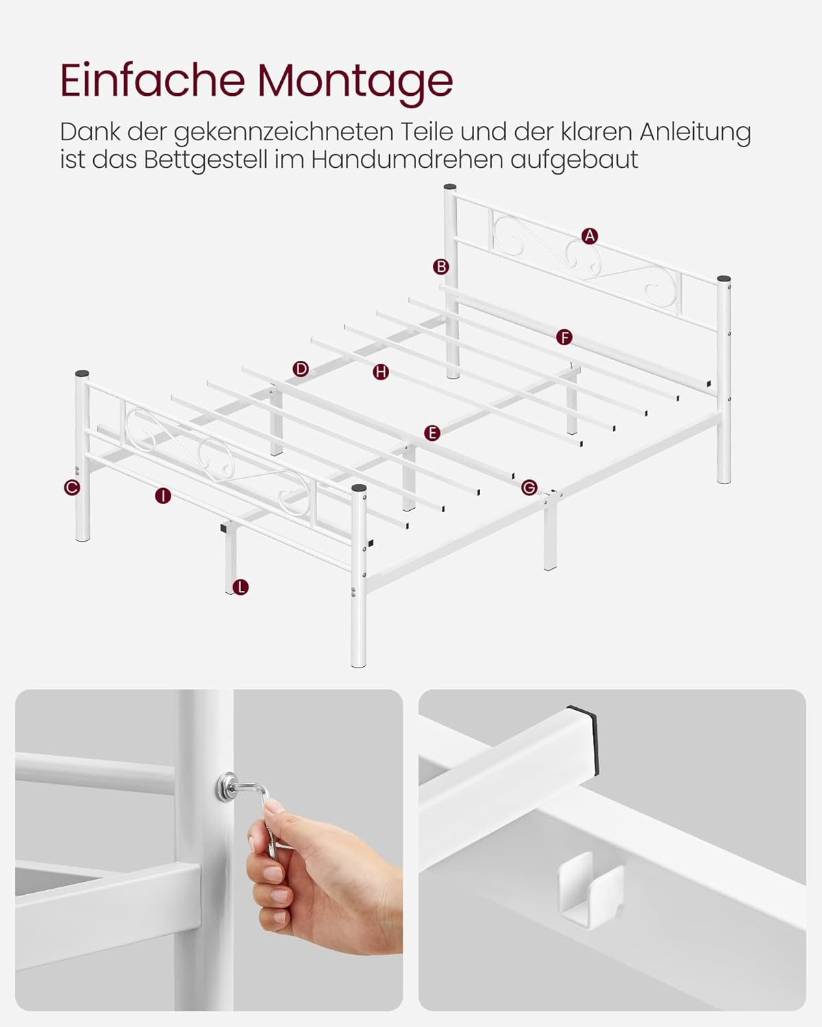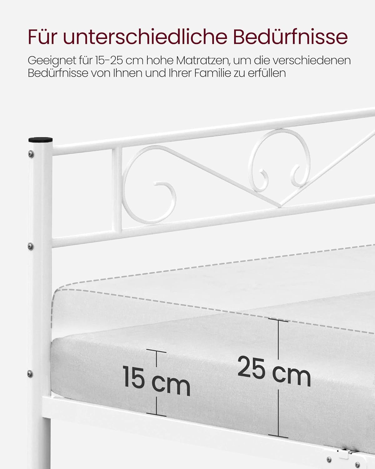The minimalist design and classic white finish of this metal bed frame bring a touch of modern elegance to any room. Whether for a guest room or main bedroom, its timeless look complements a variety of interior styles. The high headboard adds comfort and support while reading or relaxing, creating the perfect blend of functionality and style.