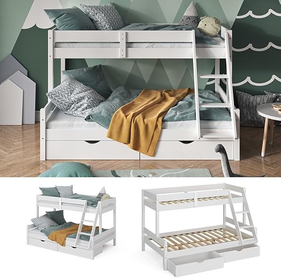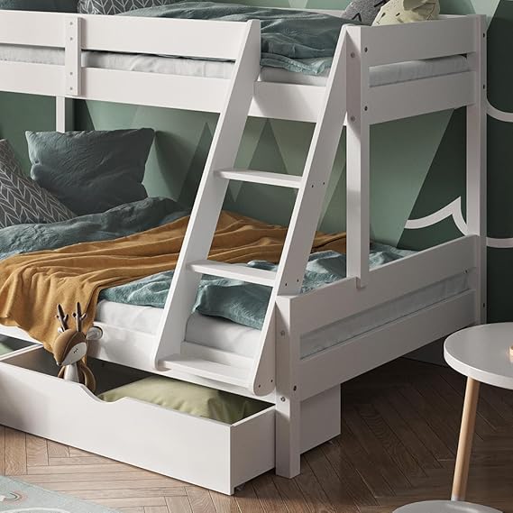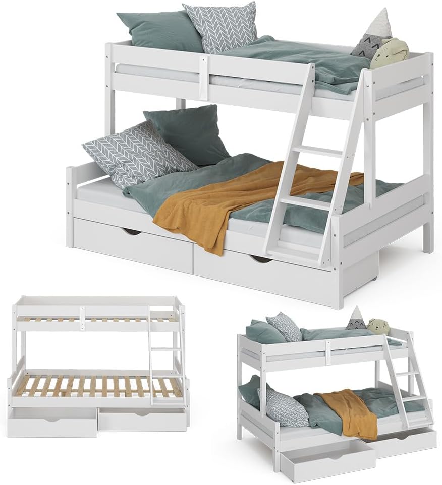• Spacious Sleeping Areas for Two Kids – Designed to fit one mattress size 200 x 140 cm and another 200 x 90 cm, this bunk bed offers versatile sleeping comfort for siblings or guests. With a total height of 131 cm, it balances vertical practicality with accessibility, fitting well in standard children’s rooms. Clear and detailed measurements included in product photos help ensure seamless planning and perfect position in your home.