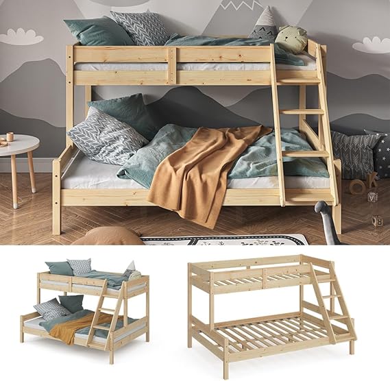 Constructed from solid natural pine wood, this bunk bed offers long-lasting durability and a sturdy frame to support everyday use. The high-quality wood provides reliable strength while adding a warm, natural aesthetic that complements any interior style. Its robust design ensures safety and stability, making it a practical and attractive furniture choice for children’s rooms.